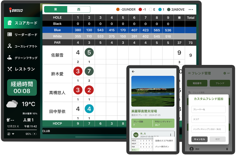 ゴルファーは、iSwing 端末または専用アプリ iCaddie APP プラットフォームでいつでも最新のゴルフ情報を 入手でき、ゴルファーにとってゴルフ情報の入手がより便利になります。